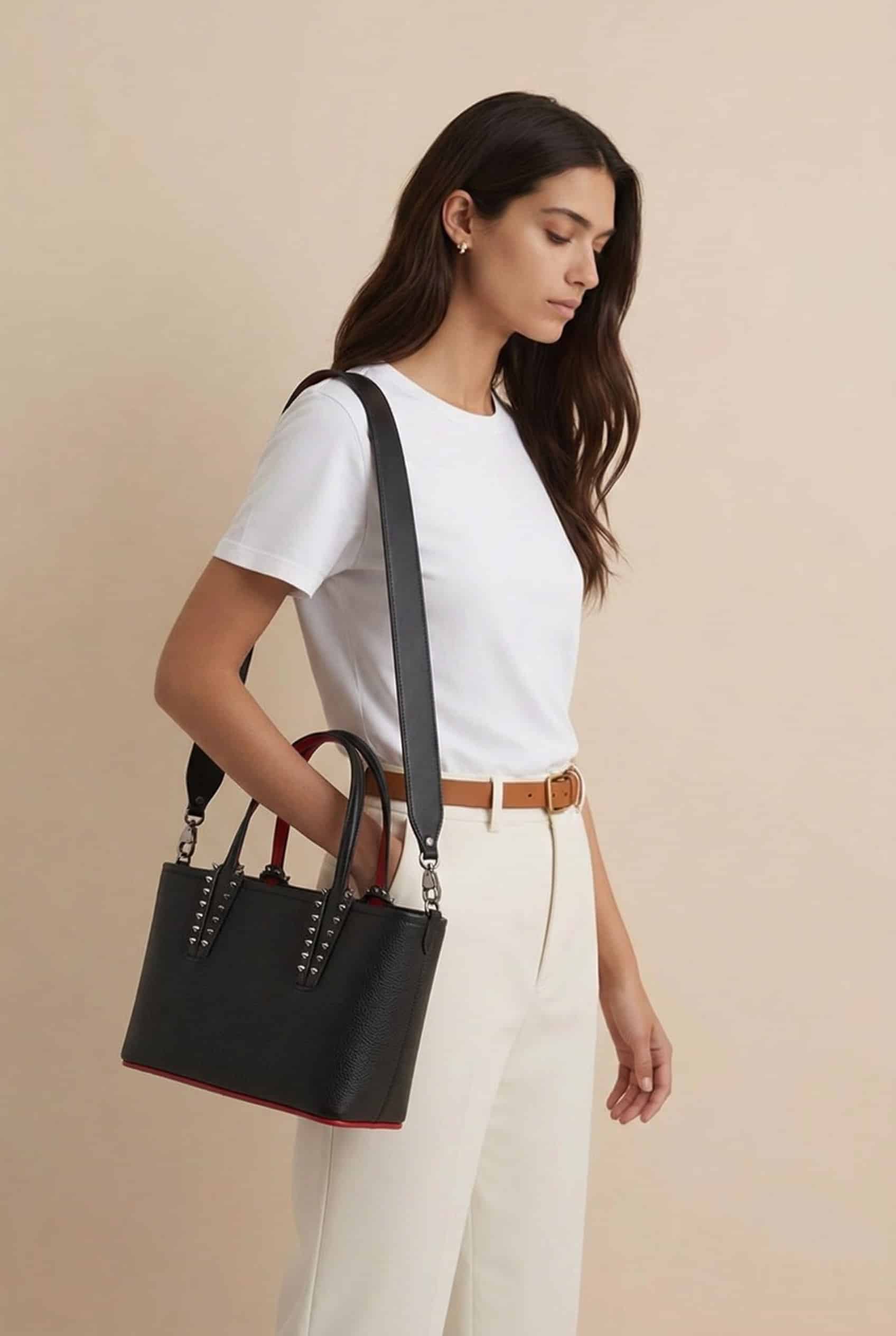 CHRISTIAN LOUBOUTIN Cabata Mini Tote bag in grained black calf leather. This tote bag combines sophistication with practicality. The grained black calf leather ensures a luxurious feel. Perfect for those who appreciate fine craftsmanship. 🌟