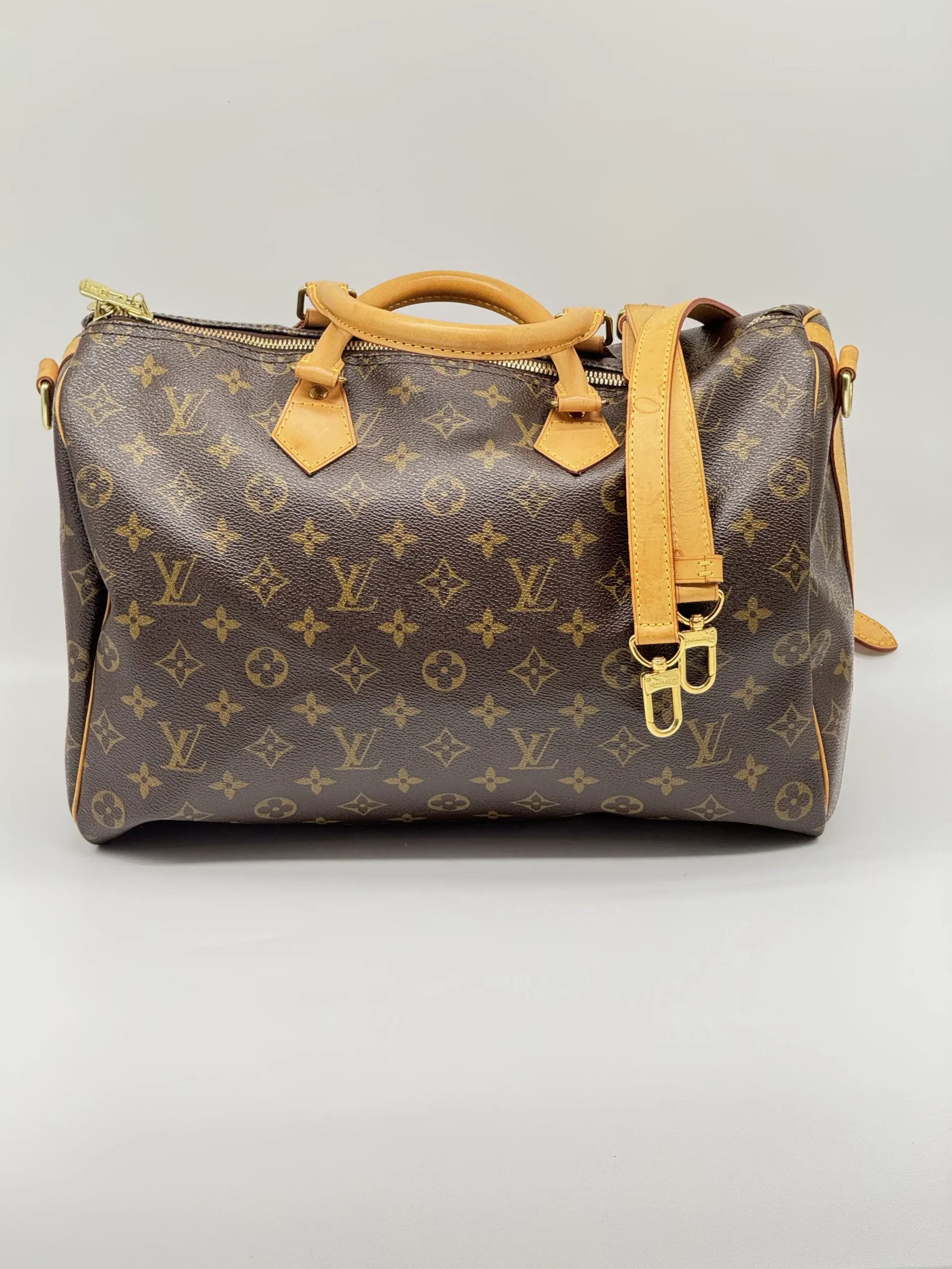Discover the LOUIS VUITTON Pre Owned Speedy 35 Bandolier Monogram Shoulder Bag. This iconic piece showcases the classic Monogram pattern, adding sophistication. Perfect for those who value timeless design, it’s a versatile accessory for any occasion. The bag combines functionality with fashion, ensuring practicality and elegance.