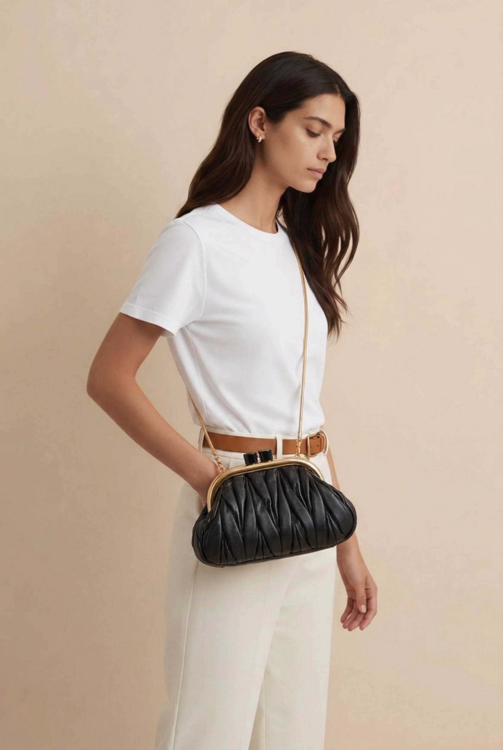 - The MIU MIU Belle Clutch features a sleek black nappa leather exterior. 🌟
