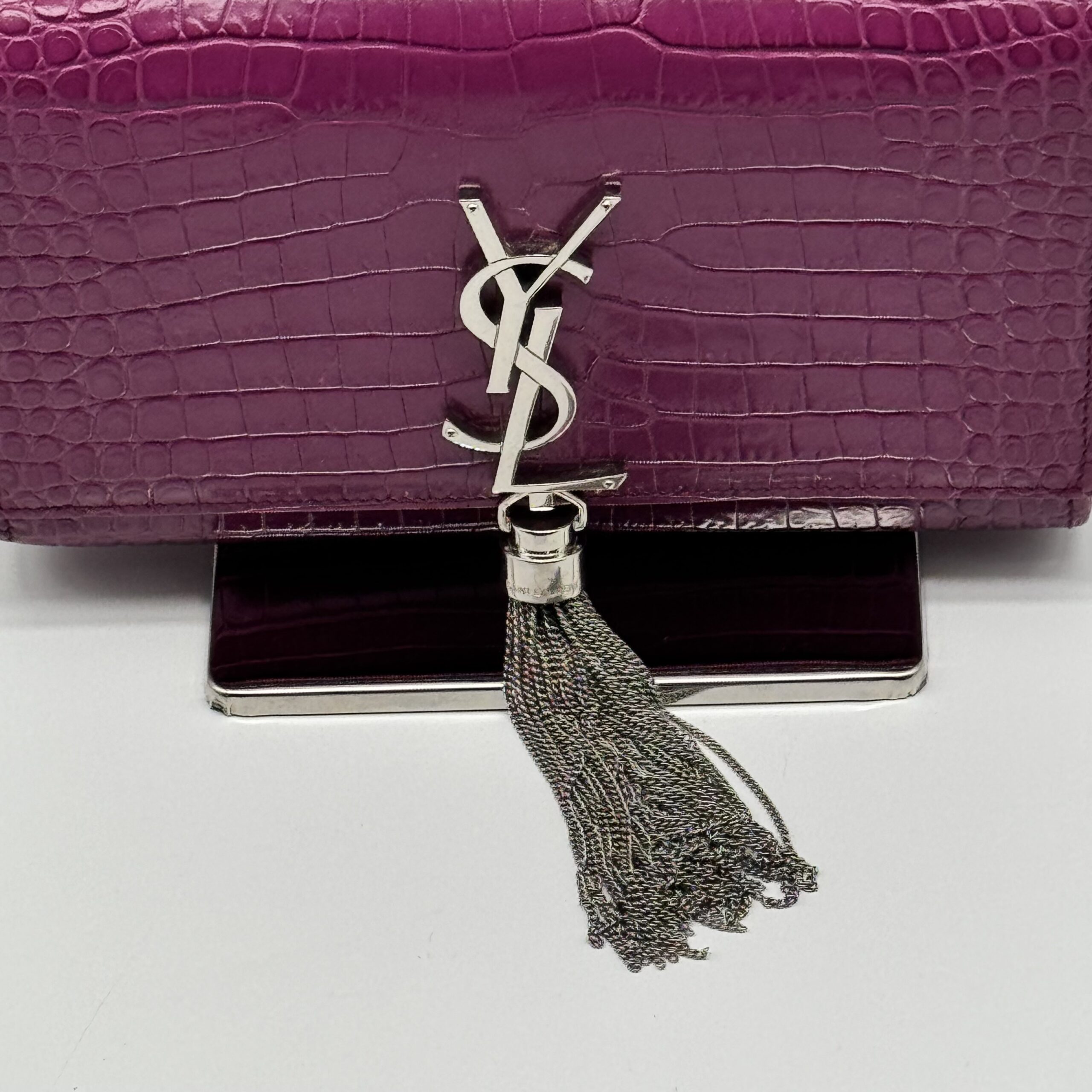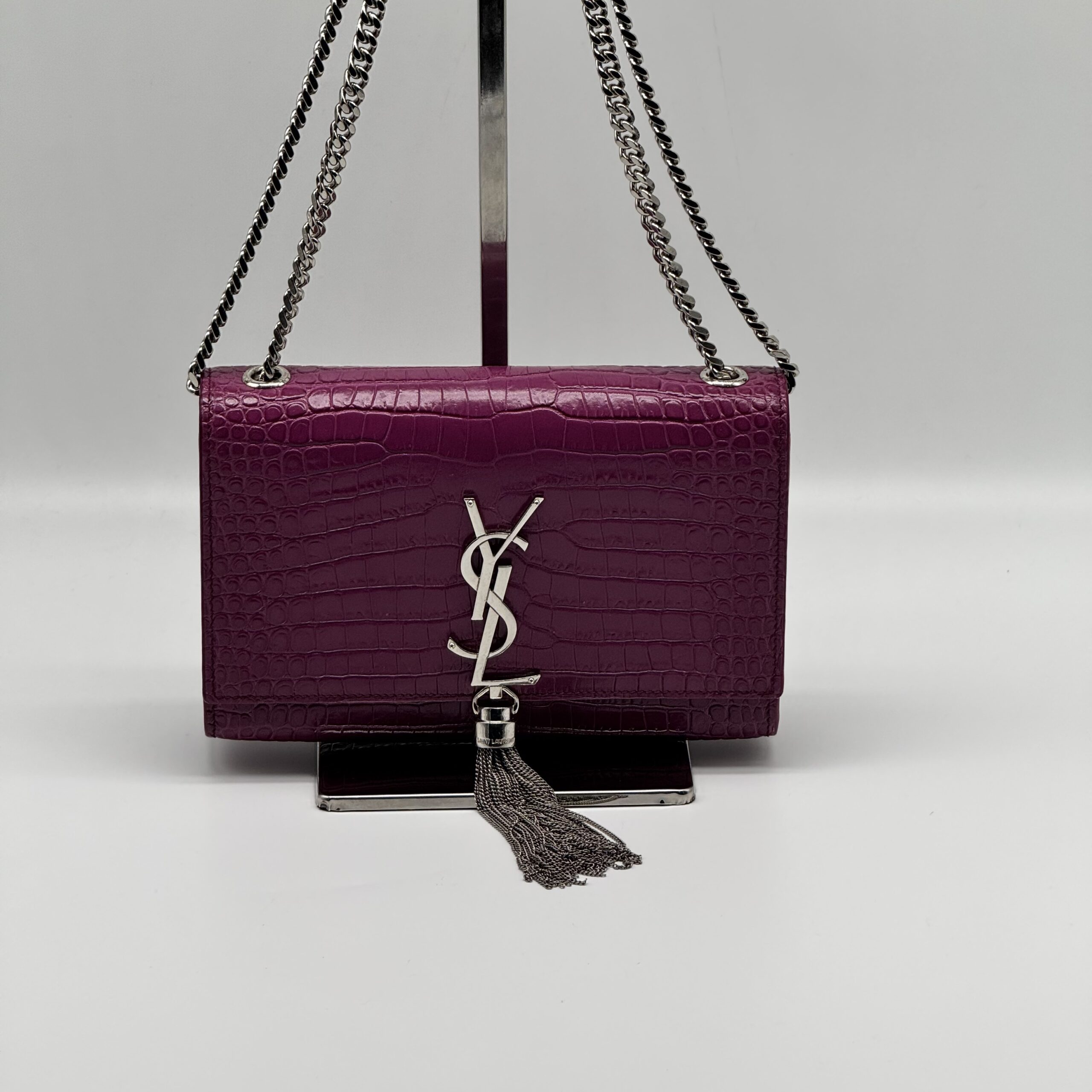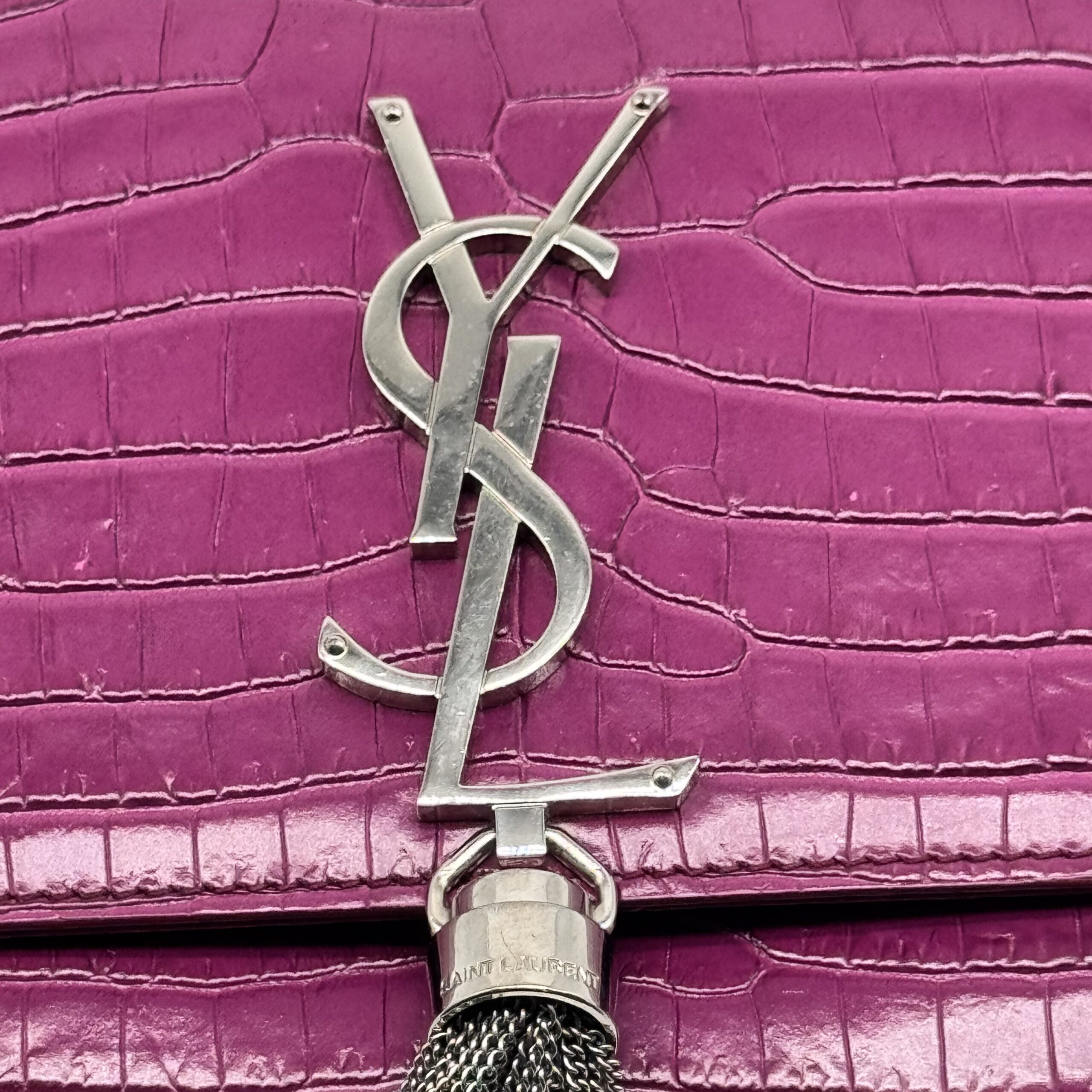 The YSL Saint Laurent Medium Monogram Kate Tassel Shoulder Bag is a stylish accessory. It features a medium size and a monogram design. The bag includes a tassel detail, adding a touch of elegance. Perfect for those who appreciate both fashion and functionality.