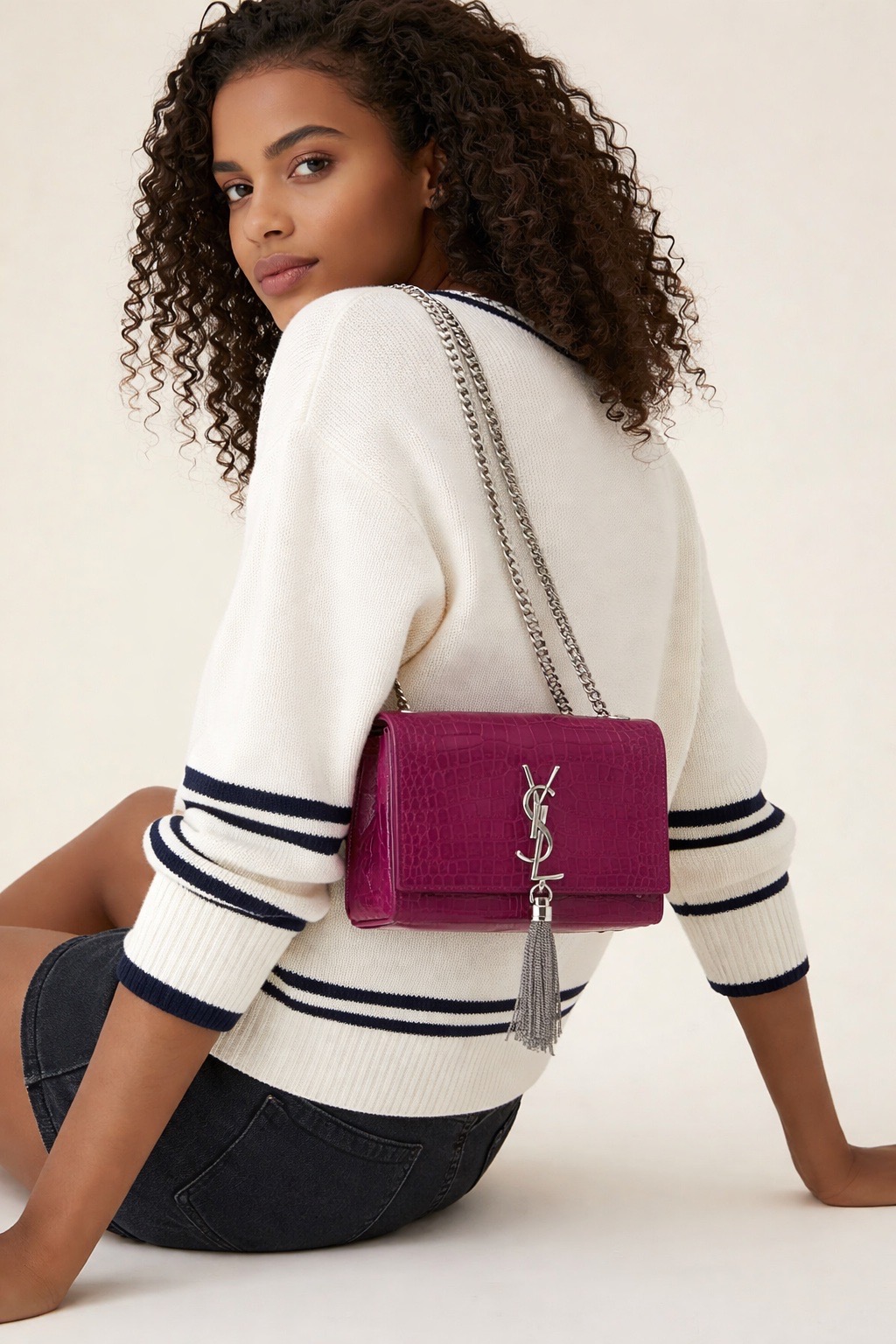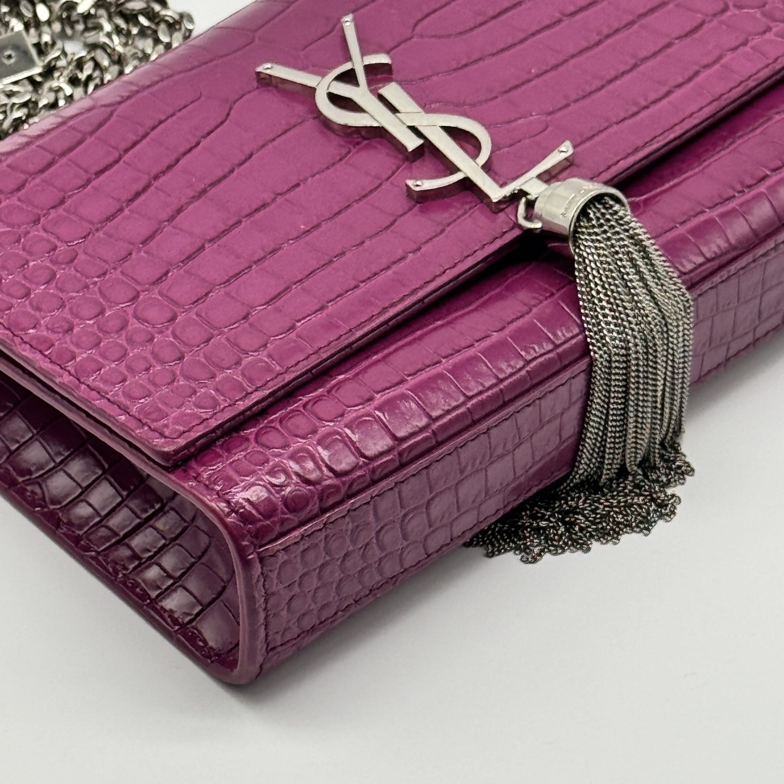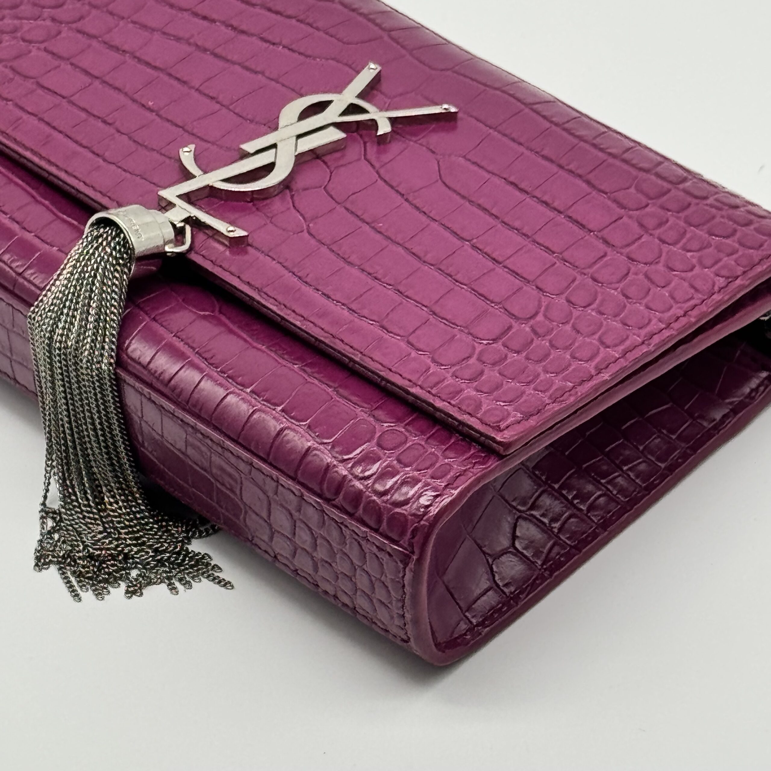 The YSL Saint Laurent Medium Monogram Kate Tassel Shoulder Bag is a stylish accessory. It features a medium size and a monogram design. The bag includes a tassel detail, adding a touch of elegance. Perfect for those who appreciate both fashion and functionality.